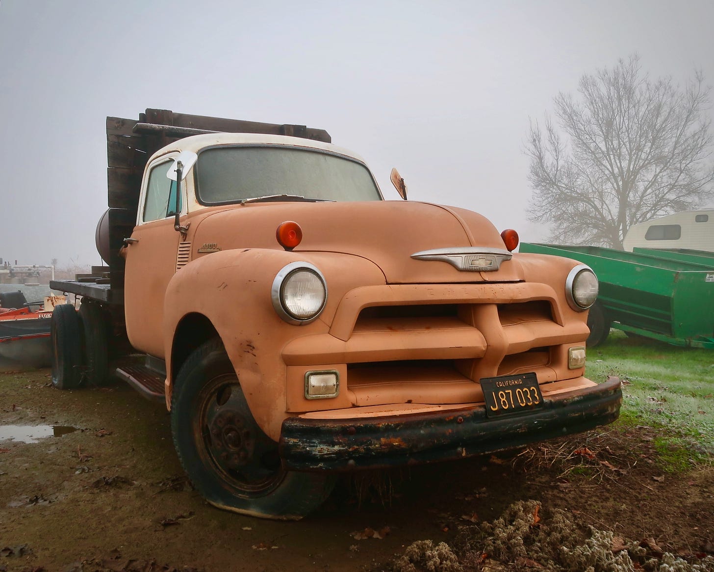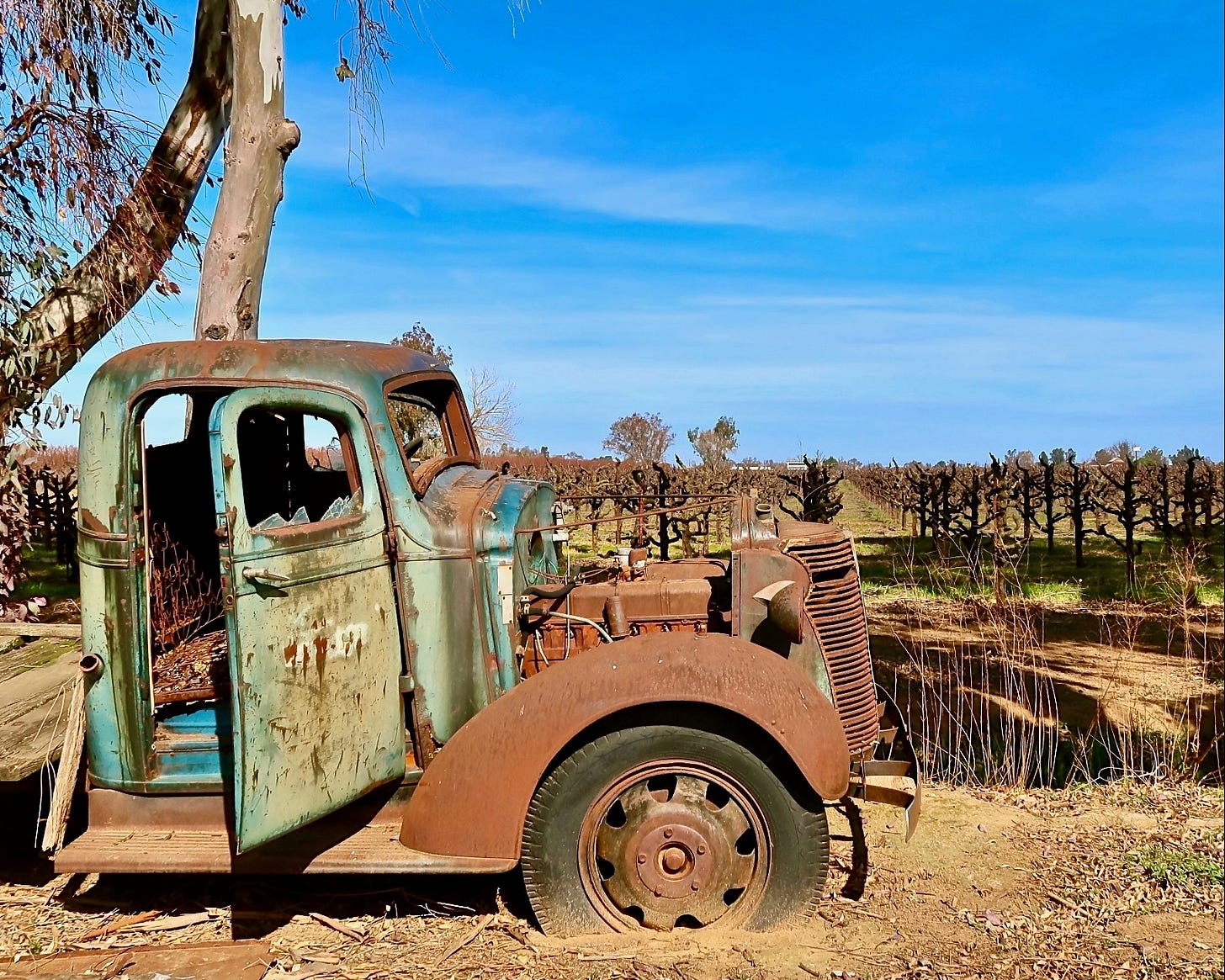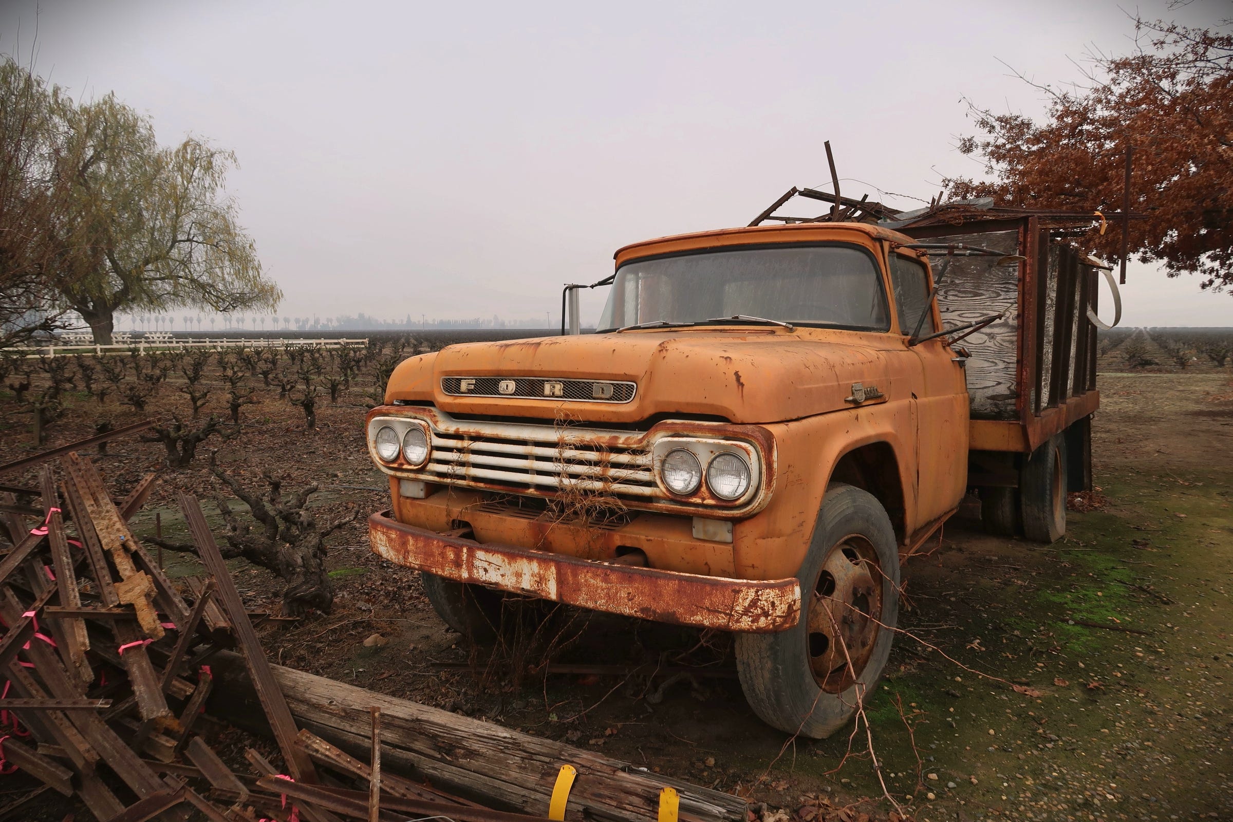 The old, decrepit truck had been parked at the edge of the vineyard for as long as anyone could remember. Who would drive such a bright orange truck? Old-timers remembered that it once belonged to Old Man Rios, a small, wizened, independent Filipino contractor who, for years, delivered crates of grapes to a packing shed shuttered long ago, just down the road. The local kids would weave banana bikes alongside it, waving as Rios puttered slowly by, his dog Max in the passenger seat, ears flapping in the wind through the open window.